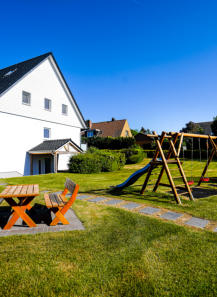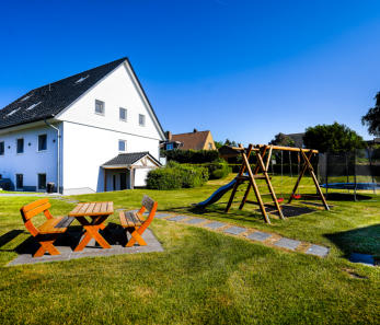 Für die Kleinen gibt es 2 Schaukeln, eine kleine Rutsche sowie ein Trampolin.
