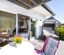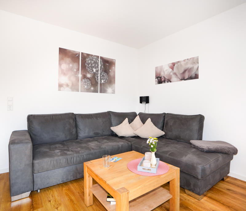 Die lichtdurchflutete Ferienwohnung befindet sich im Erdgeschoss unseres Gästehauses. Sie verfügt über