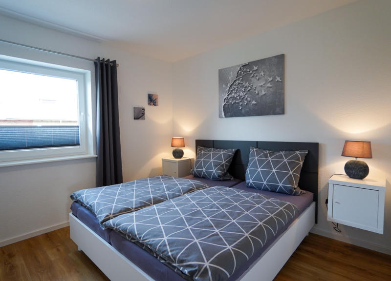 Terrasse in Südlage. Des Weiteren gibt es ein Schlafzimmer mit Doppelbett und TV, ein Schlafzimmer mit