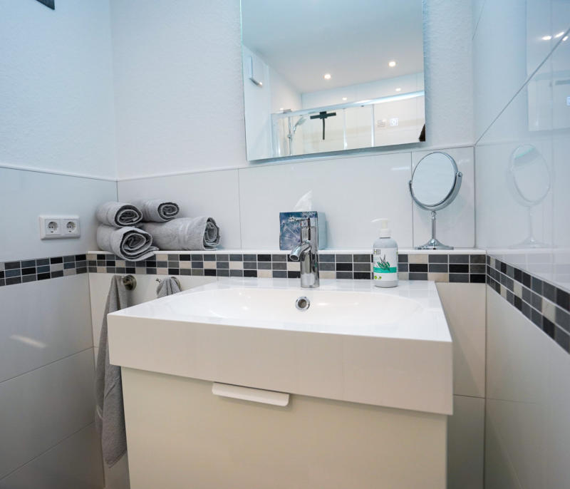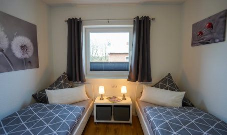 zwei Einzelbetten und ein Bad mit großer Dusche. Für unsere kleinen Gäste stellen wir sehr gerne ein
