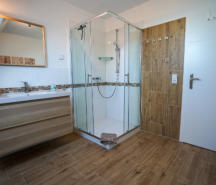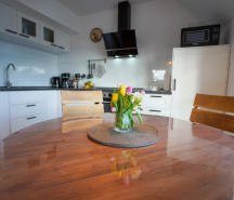 Gästehauses. Im unteren Bereich befindet sich eine moderne Wohnküche, ein Schlafzimmer mit zwei