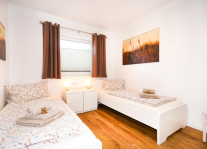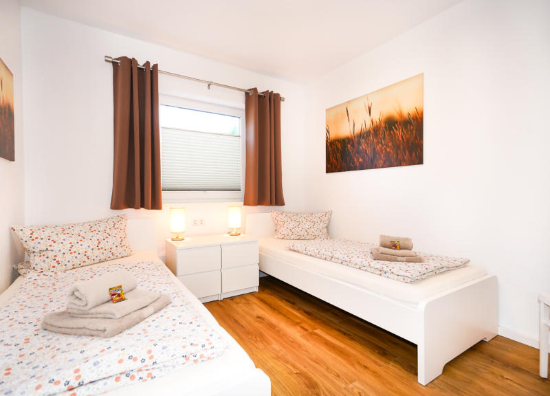 Einzelbetten und ein Bad mit großer Dusche. Für unsere kleinen Gäste stellen wir sehr gerne ein