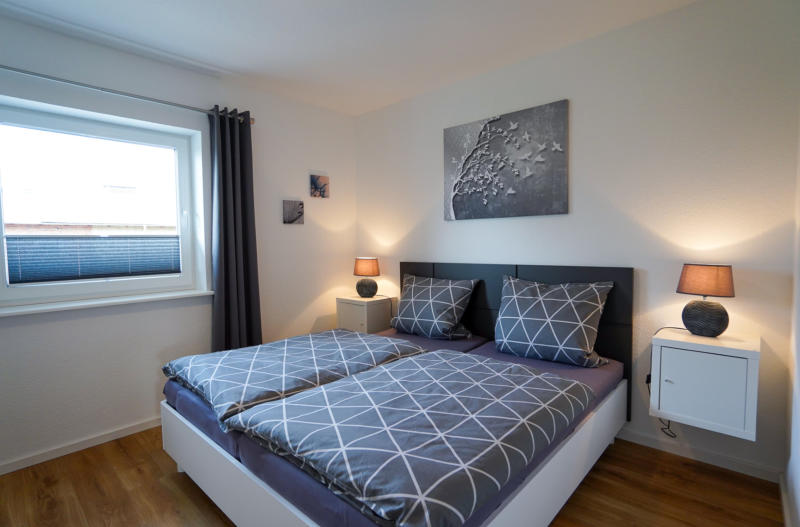 Terrasse in Südlage. Des Weiteren gibt es ein Schlafzimmer mit Doppelbett und TV, ein Schlafzimmer mit