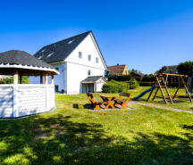 Für die Kleinen gibt es 2 Schaukeln, eine kleine Rutsche sowie ein Trampolin.